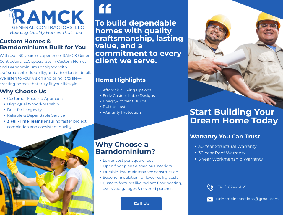 Discover the home you've always envisioned with RAMCK General Contractors LLC. Your dream home is not just a project for us; it's a shared journey towards creating a space that reflects your lifestyle and aspirations. Our dedicated team brings expertise, creativity, and a friendly approach to every detail. Trust RAMCK to turn your dreams into reality, crafting a home where memories are made and your vision comes to life. Your dream home is within reach – let's build it together with passion and precision.